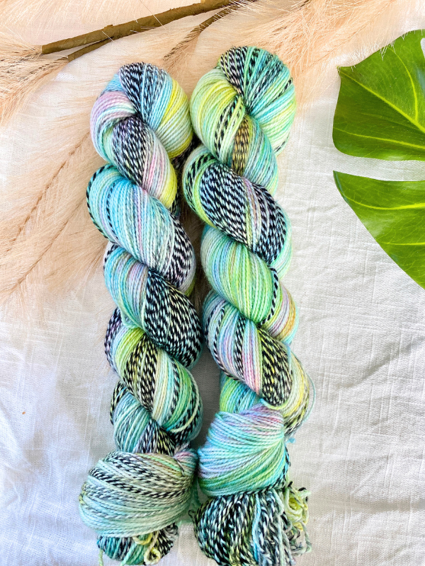 The foreign yarn bases come from a high-quality spinning mill in Great Britain, which specializes in the production of hand-dyed base yarns. The yarns are mulesing free and do not use Australian wool. We have spun the domestic yarn bases in Finland, and the wool in these yarns is mainly from Pirkanmaa.