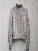 Yarn: 1 strand of Knitting for Olive Merino or Bite Silk (250 m/50 g), or other fingerin-strong yarn 4 (5, 5, 5, 5, 6, 6, 7) collect AND 1 strand Soft Silk Mohair (225 m/25 g), or other lace-strength yarn 4 (5, 5, 5, 6, 6, 7, 7,) collect. The model is knitted from Oatmeal-colored Merino and Linen-colored Soft Silk Mohair.